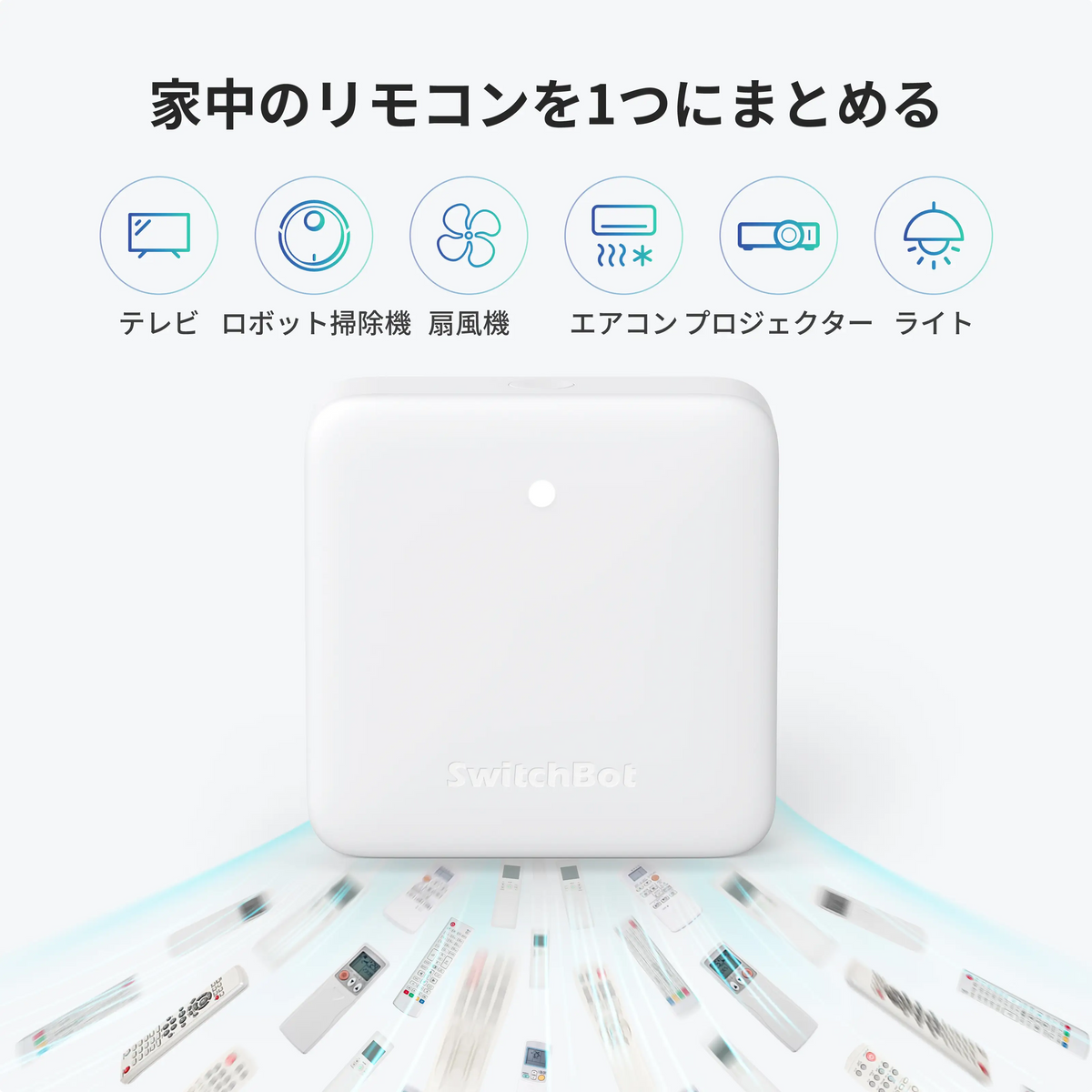 SwitchBot Hubは、赤外線リモコンをスマホに登録し操作することができるデバイスです。